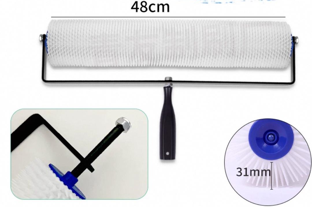 Self-Leveling Spike Roller has been designed specifically for cement- and gypsum-based self-leveling underlayments and toppings. The shape of the spikes is also designed to cut through the material easily, creating a much smoother, homogenous material. Self-Leveling Spike Roller enables quick work on large surface areas.